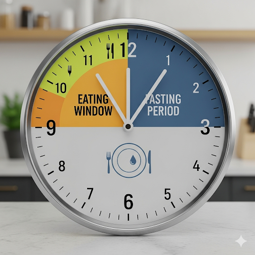 간헐적 단식은 '음식 종류'가 아닌 '식사 시간'을 조절하는 식사법입니다. 음식을 먹는 시간(Feeding Window)과 먹지 않는 시간(Fasting Window)을 정해두고 지키는 것이 핵심이죠.